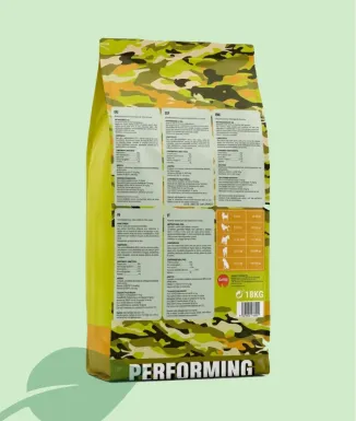 Per aportar energia digestible sense cereals, la recepta inclou patata, moniato i llentia castellana, juntament amb pastanaga, carbassa, poma i fruits del bosc, que aporten fibra, vitamines i antioxidants naturals.