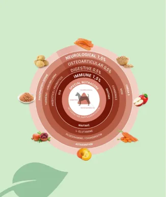 La fórmula incluye Nutracore, una suplementación nutricional que representa aproximadamente el 4% de la receta y que está diseñada para apoyar diferentes sistemas del organismo del perro adulto.